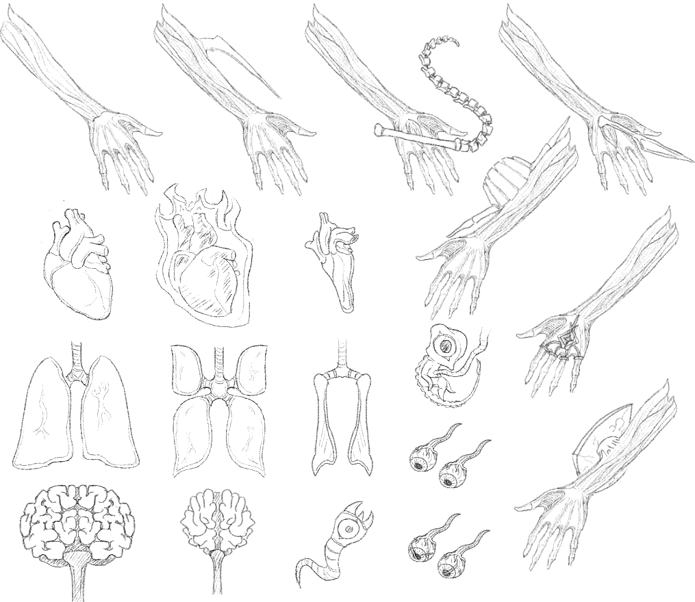 This game is a Roguelike, set in first person. You wander around, find organs and equip them on your body. Each organ has a particular stat, and may have a skill attached to it that can be used inside or out of battle. (I.E. Brachii let you attack, your Brain lets you use "Psychic" Attacks, your Heart acts as your Health meter, Eyes can let you analyze enemies, and Lungs let you run away, etc.) "STAINS" are also crawling through the corridors, and will attempt to devour your heart in battle if they catch you. Find a stairway on each floor to travel to the next, and destroy the Worldheart at the center of the earth to atone for your "unforgivable sin".